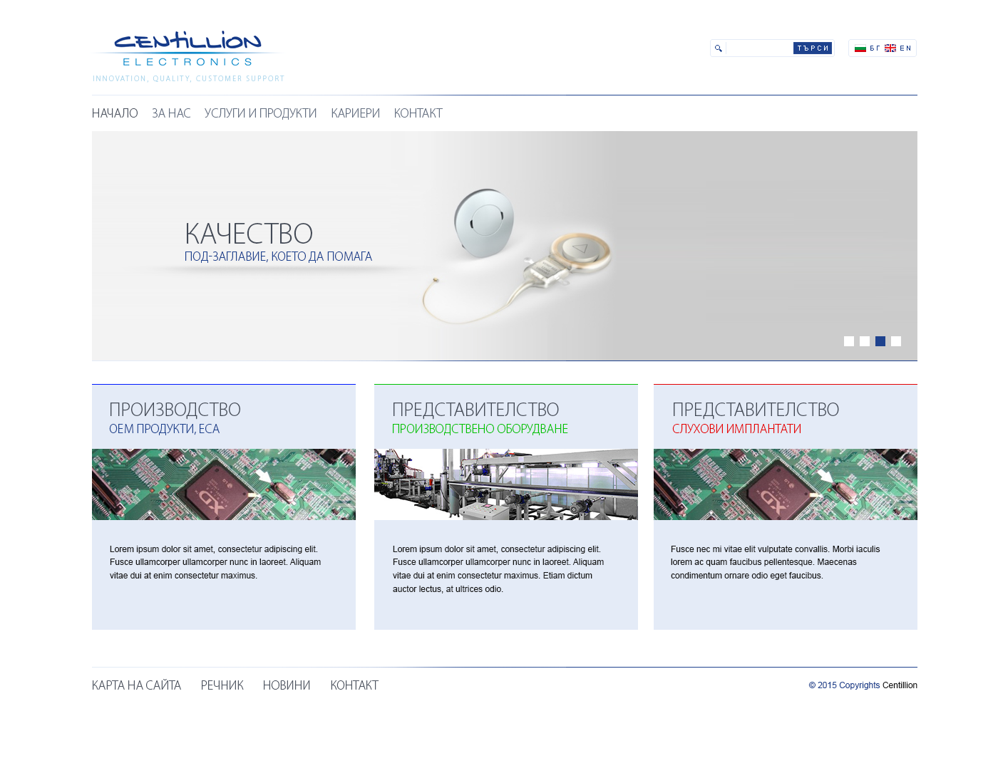 Предпроект за CENTILLION, производител на сигурни и ефективни електронни модули, системи и комплектни продукти и услуги в областите МЕДИЦИНА, СИСТЕМИ ЗА КОНТРОЛ И НАБЛЮДЕНИЕ И ПРЕЦИЗНА ИНДУСТРИАЛНА ТЕХНИКА, като използва съвременно оборудване, технологии и знания.